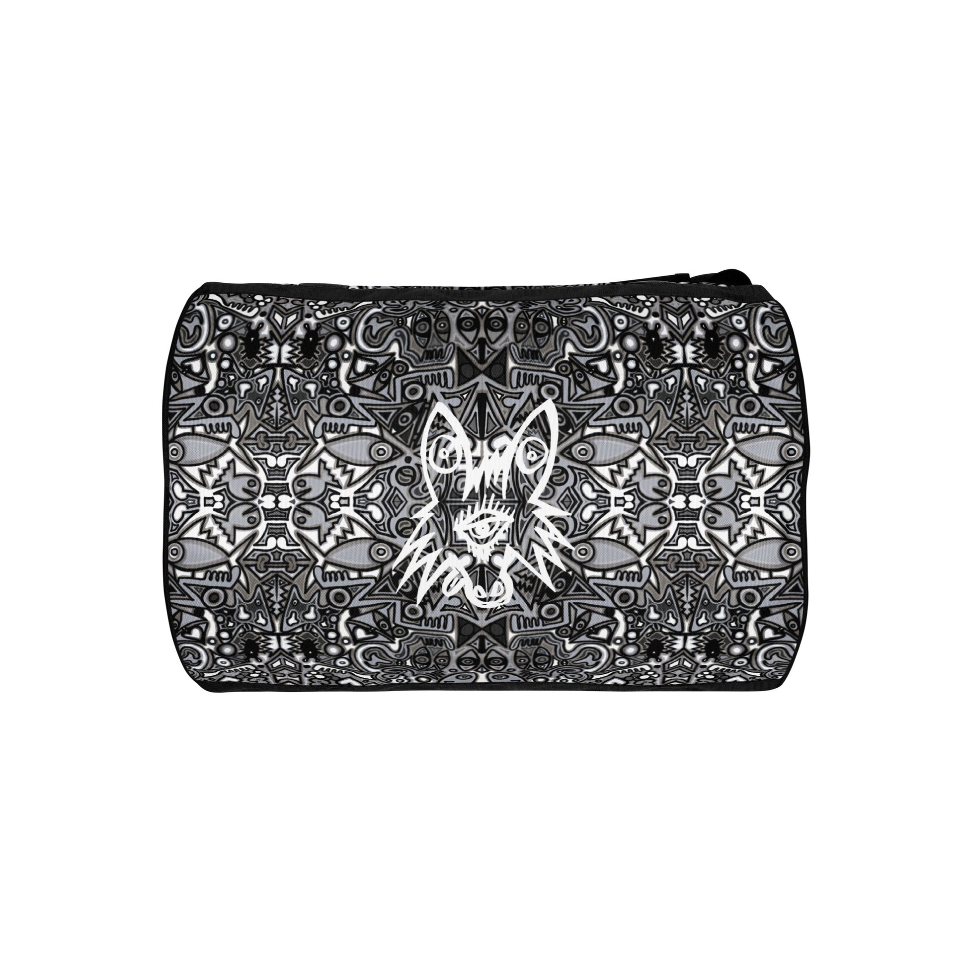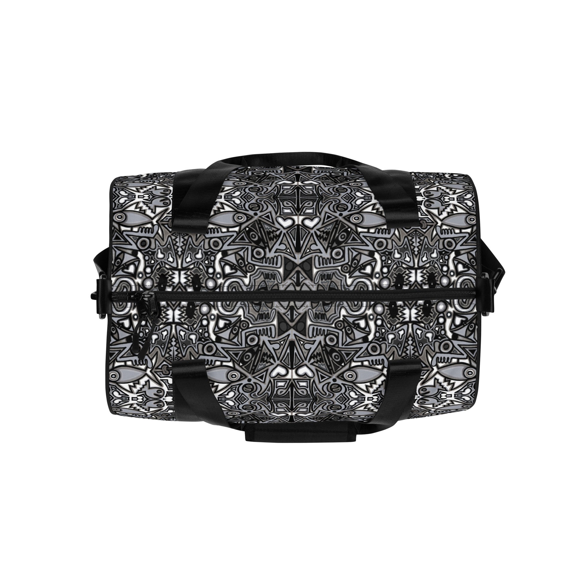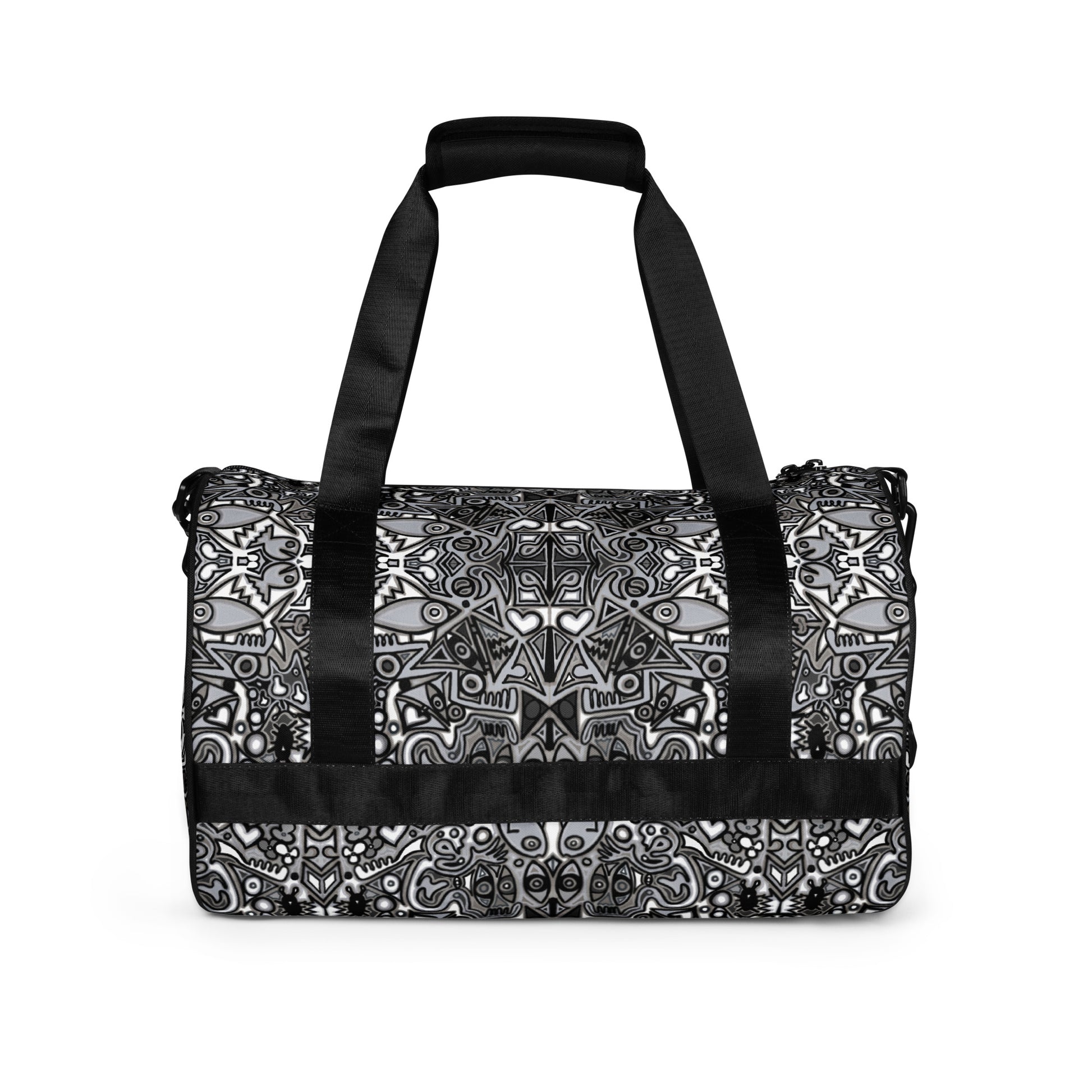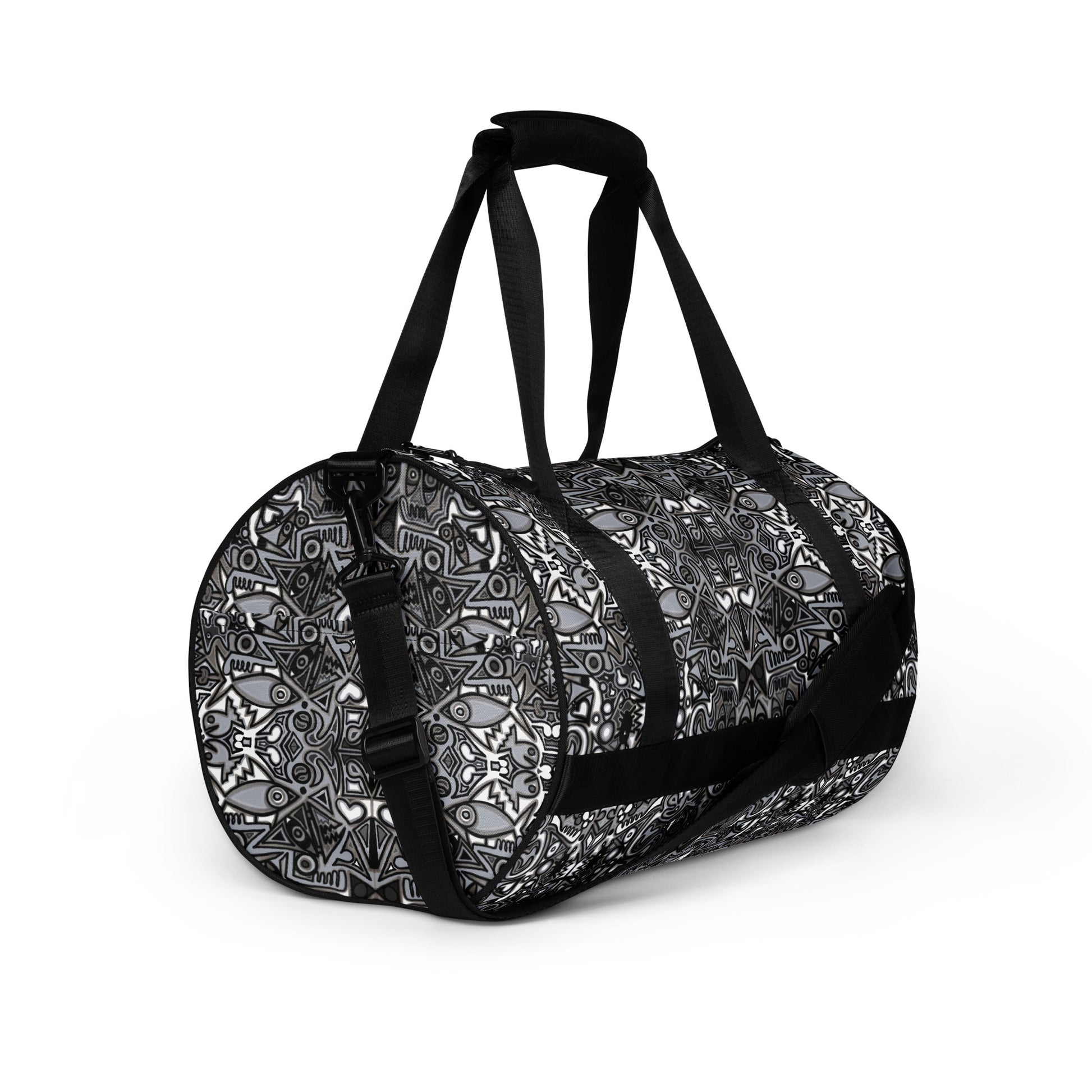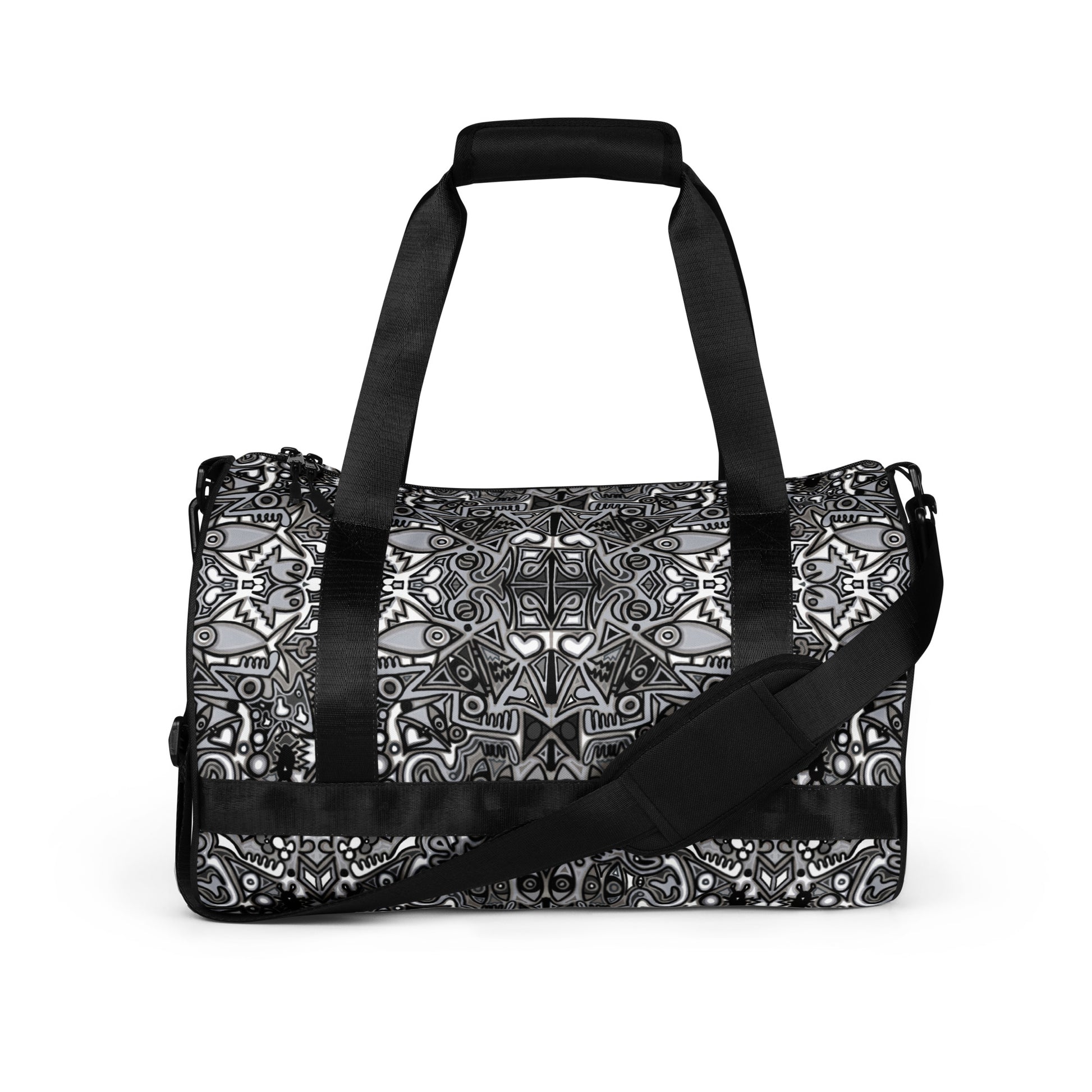 Ready to get your fitness on? Add some punch to pumping iron with this all-over print gym bag. Made from 100% polyester and sturdy, water-resistant fabric, this bag is fun meets function. And it’s got pockets!