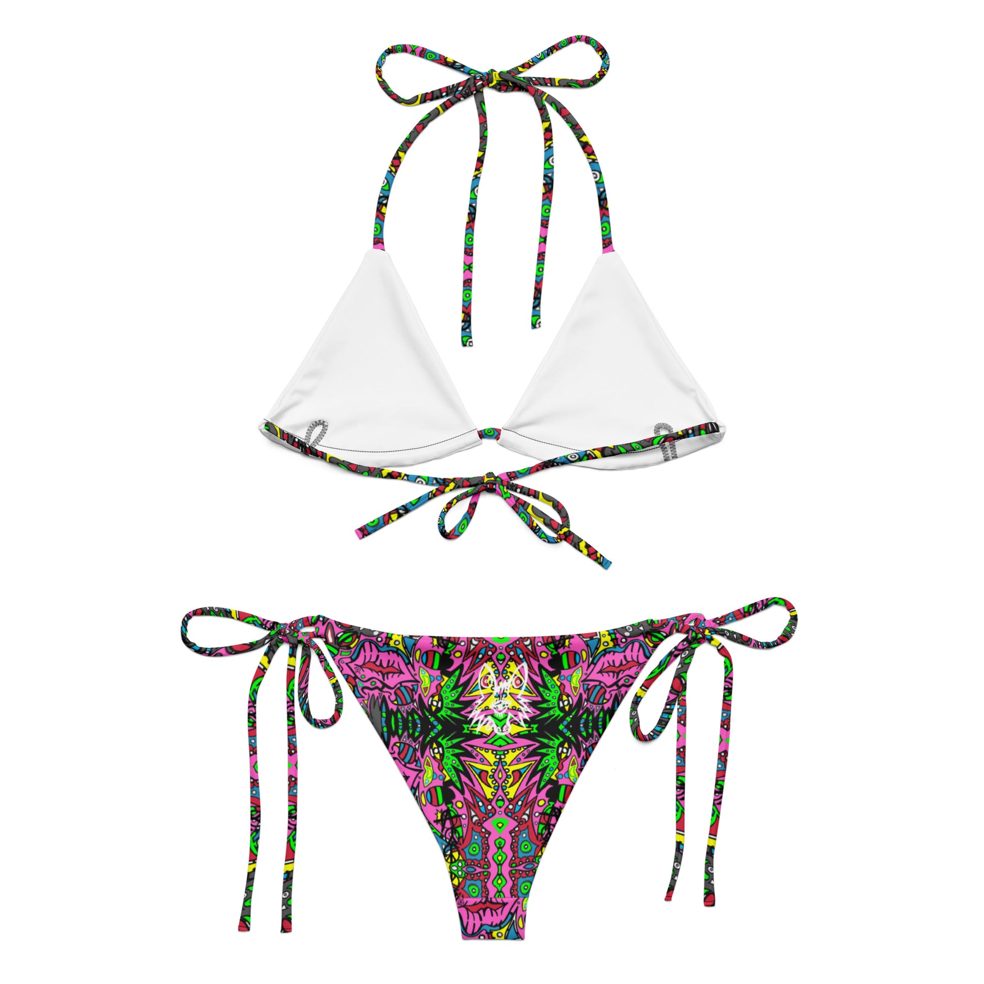 • To make your All-Over Print Recycled String Bikini last longer, thoroughly rinse it off after each use and get rid of any chlorine/salt residue.