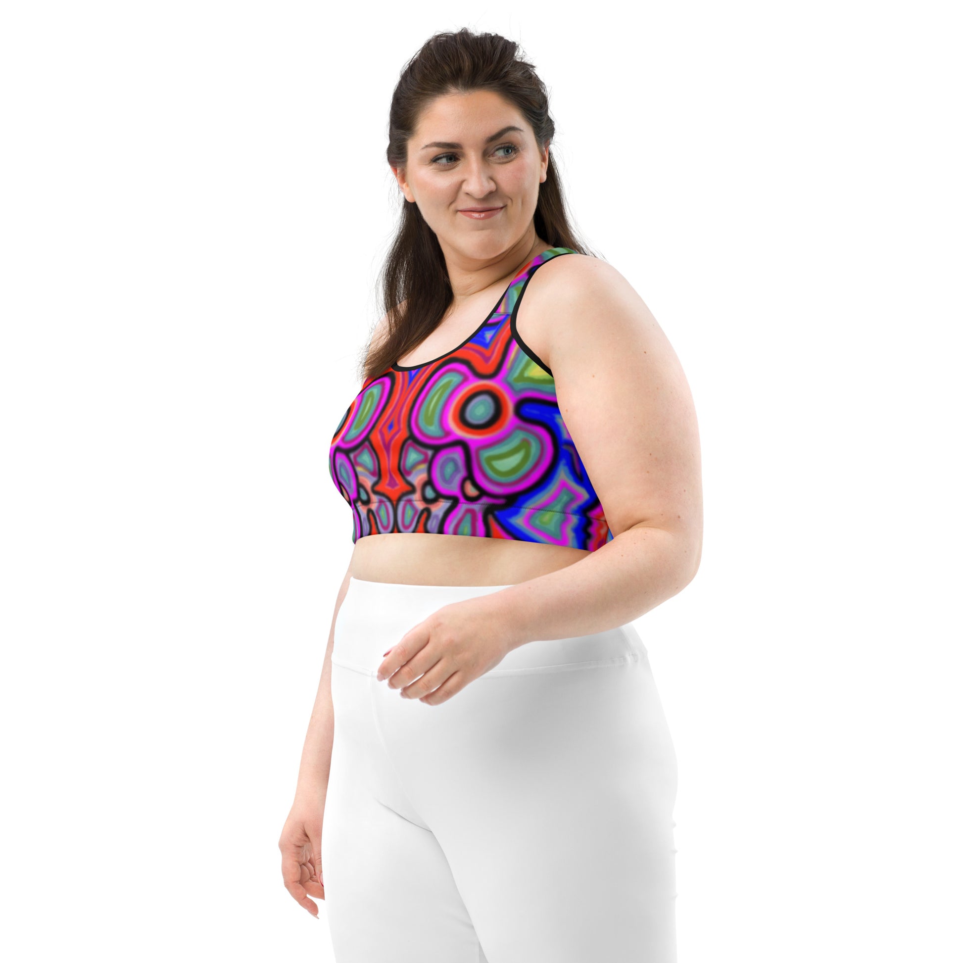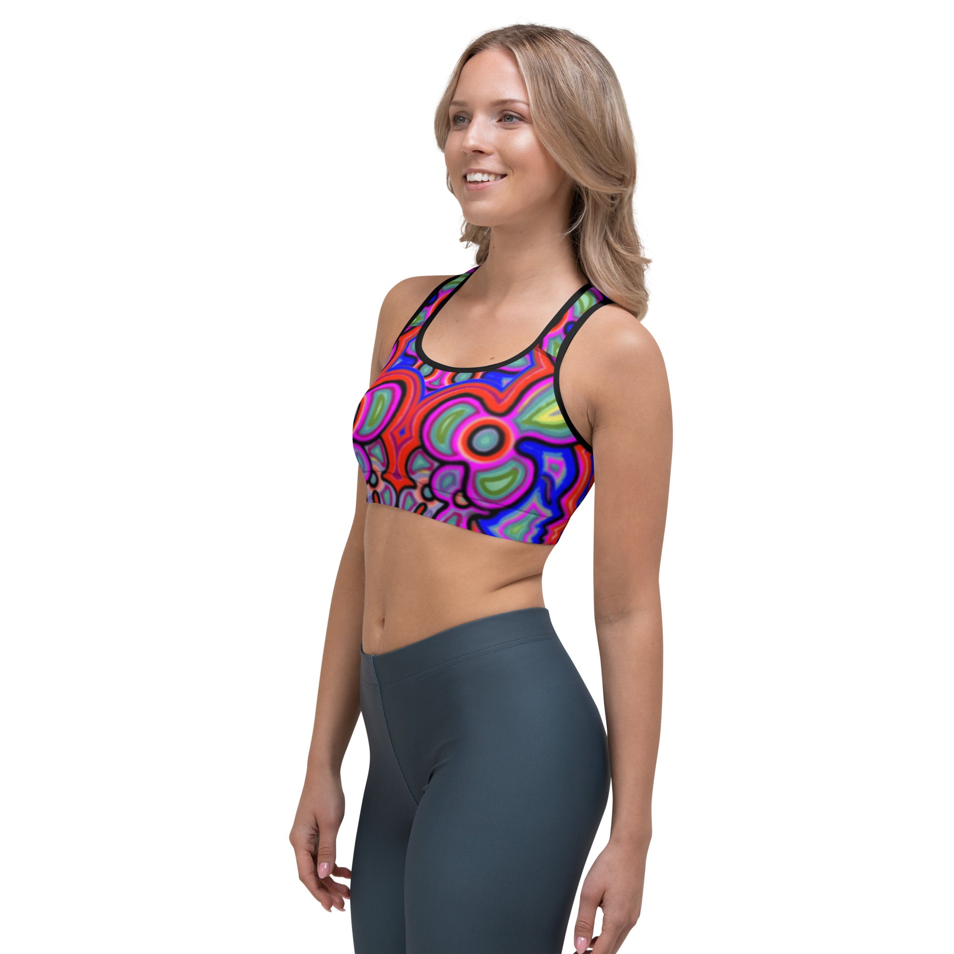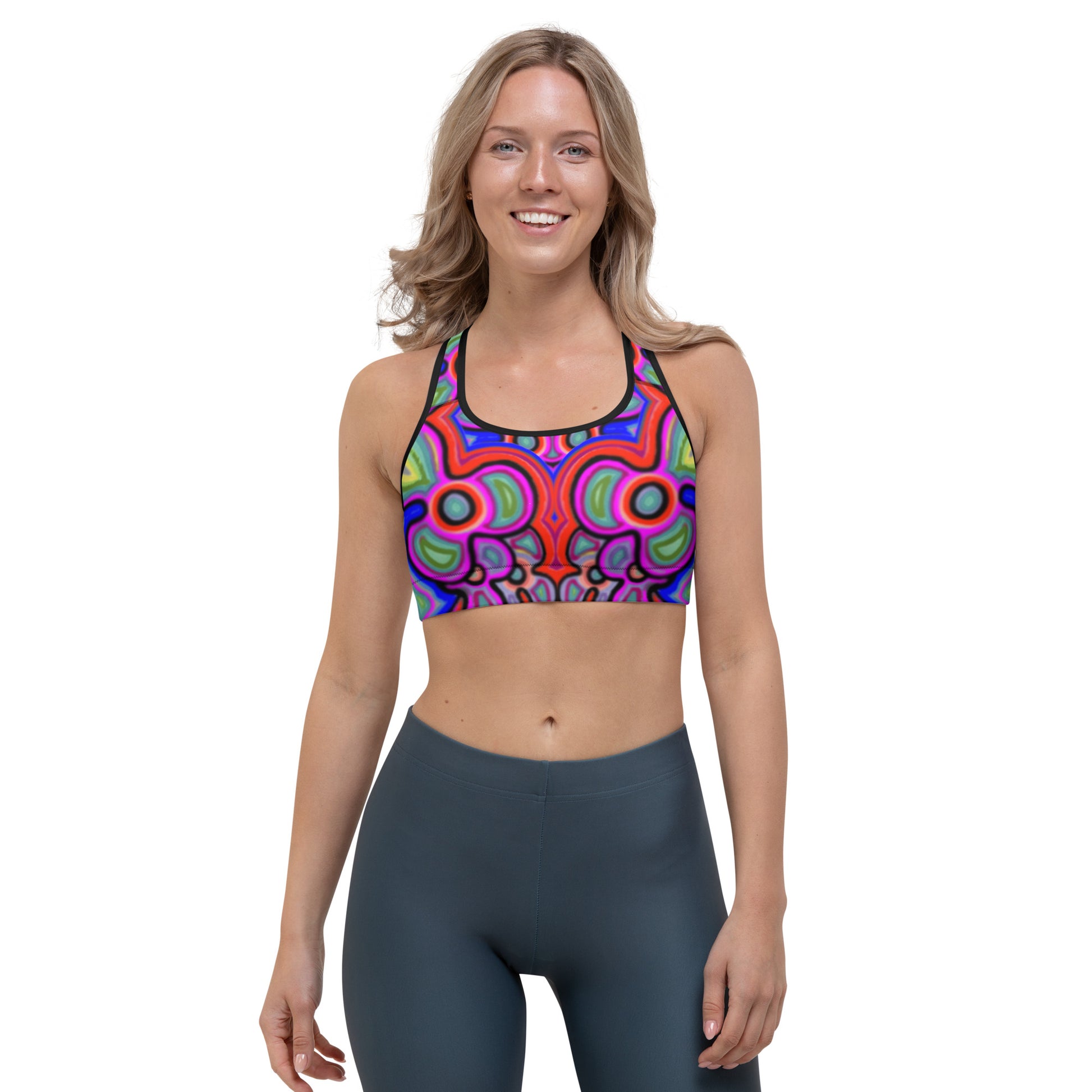 This gorgeous sports bra is made from moisture-wicking material that stays dry during low and medium intensity workouts. The bra has support material in the shoulder straps, double layer front, and a wide elastic band to ensure constant support.