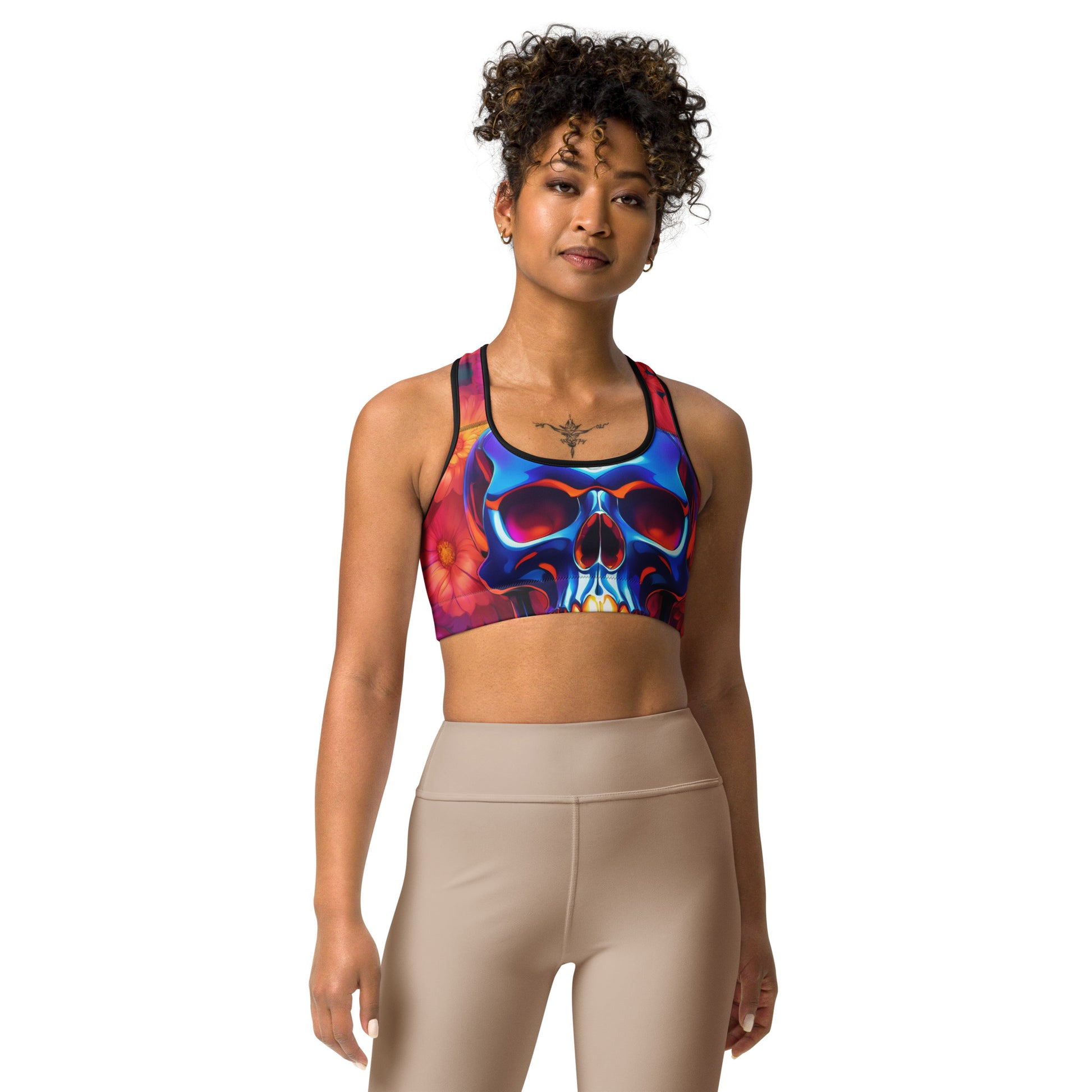 This gorgeous sports bra is made from moisture-wicking material that stays dry during low and medium intensity workouts. The bra has support material in the shoulder straps, double layer front, and a wide elastic band to ensure constant support.