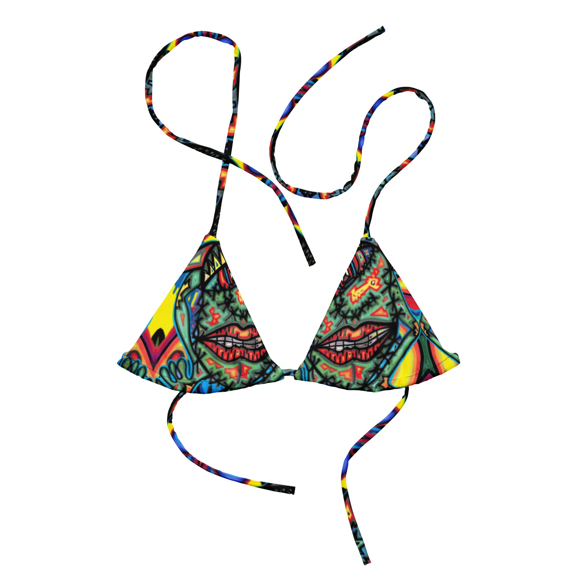 Disclaimer: To make your All-Over Print Recycled String Bikini Top last longer, thoroughly rinse it off after each use and get rid of any chlorine/salt residue.
