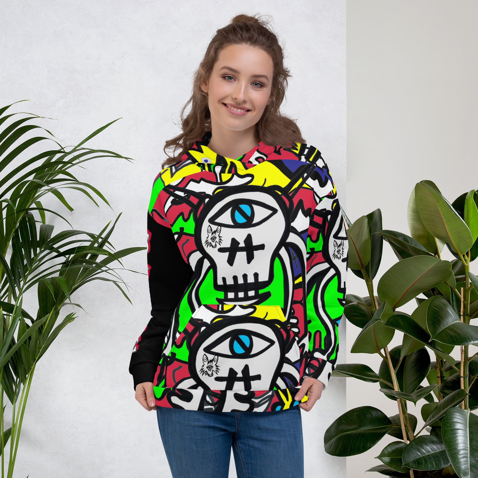 This comfy unisex hoodie has a soft outside with a vibrant print and an even softer brushed fleece inside. The hoodie has a relaxed fit, and it’s perfect for wrapping yourself into on a chilly evening.