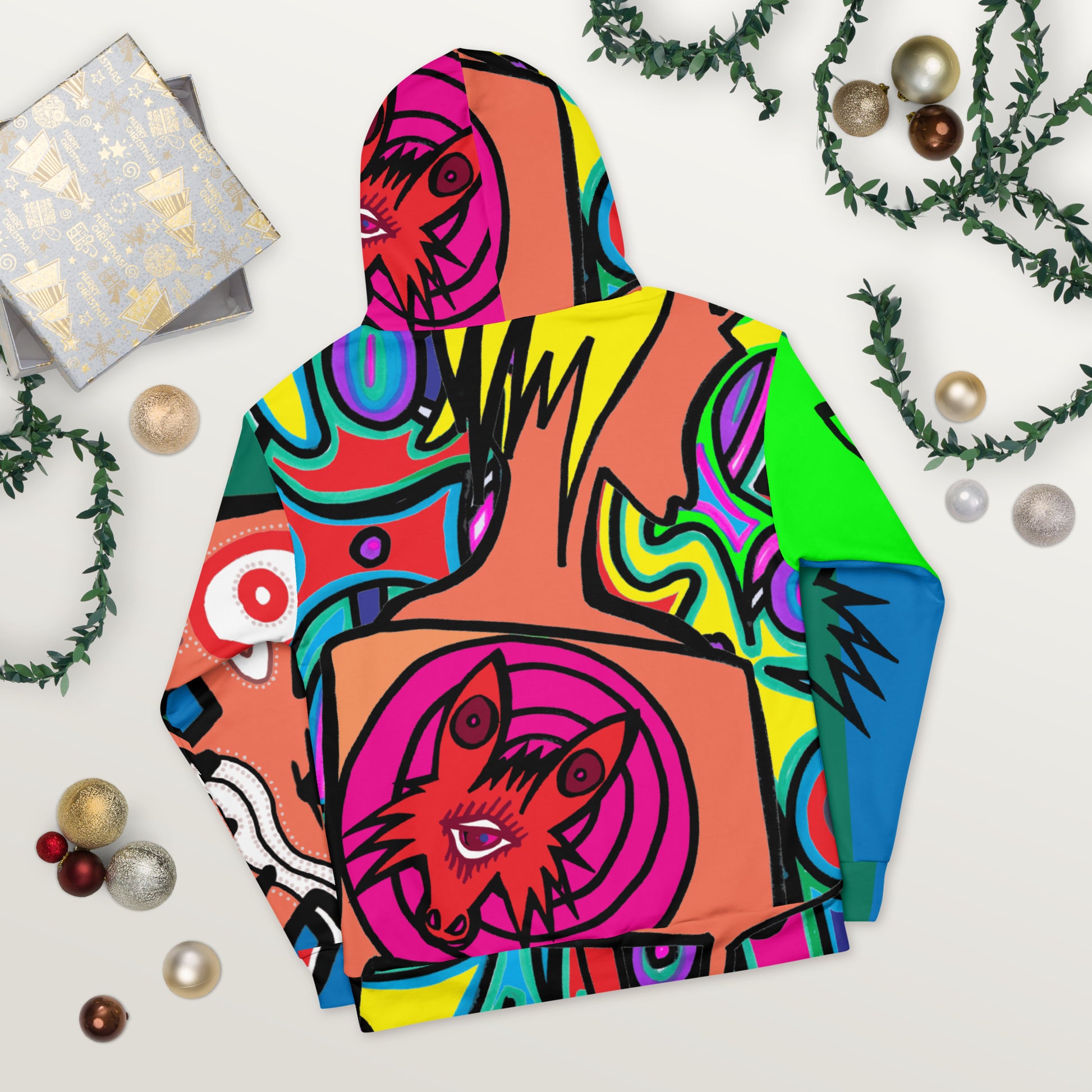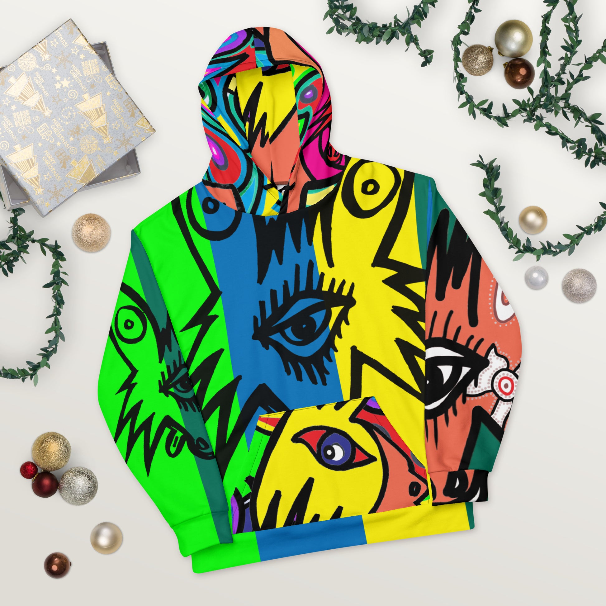 This comfy unisex hoodie has a soft outside with a vibrant print and an even softer brushed fleece inside. The hoodie has a relaxed fit, and it's perfect for wrapping yourself into on a chilly evening.