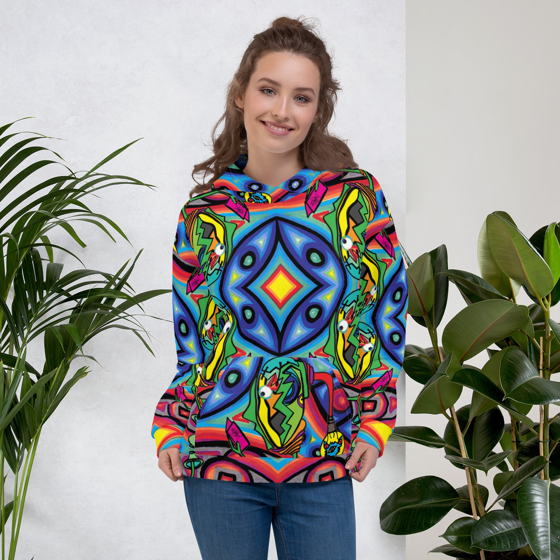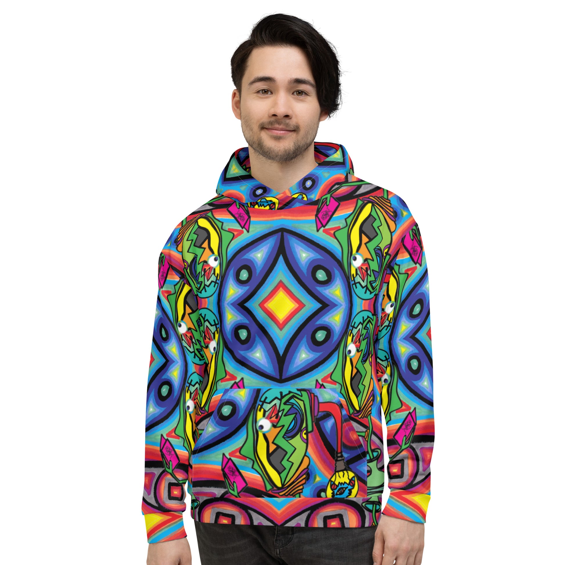 This comfy unisex hoodie has a soft outside with a vibrant print and an even softer brushed fleece inside. The hoodie has a relaxed fit, and it's perfect for wrapping yourself into on a chilly evening.