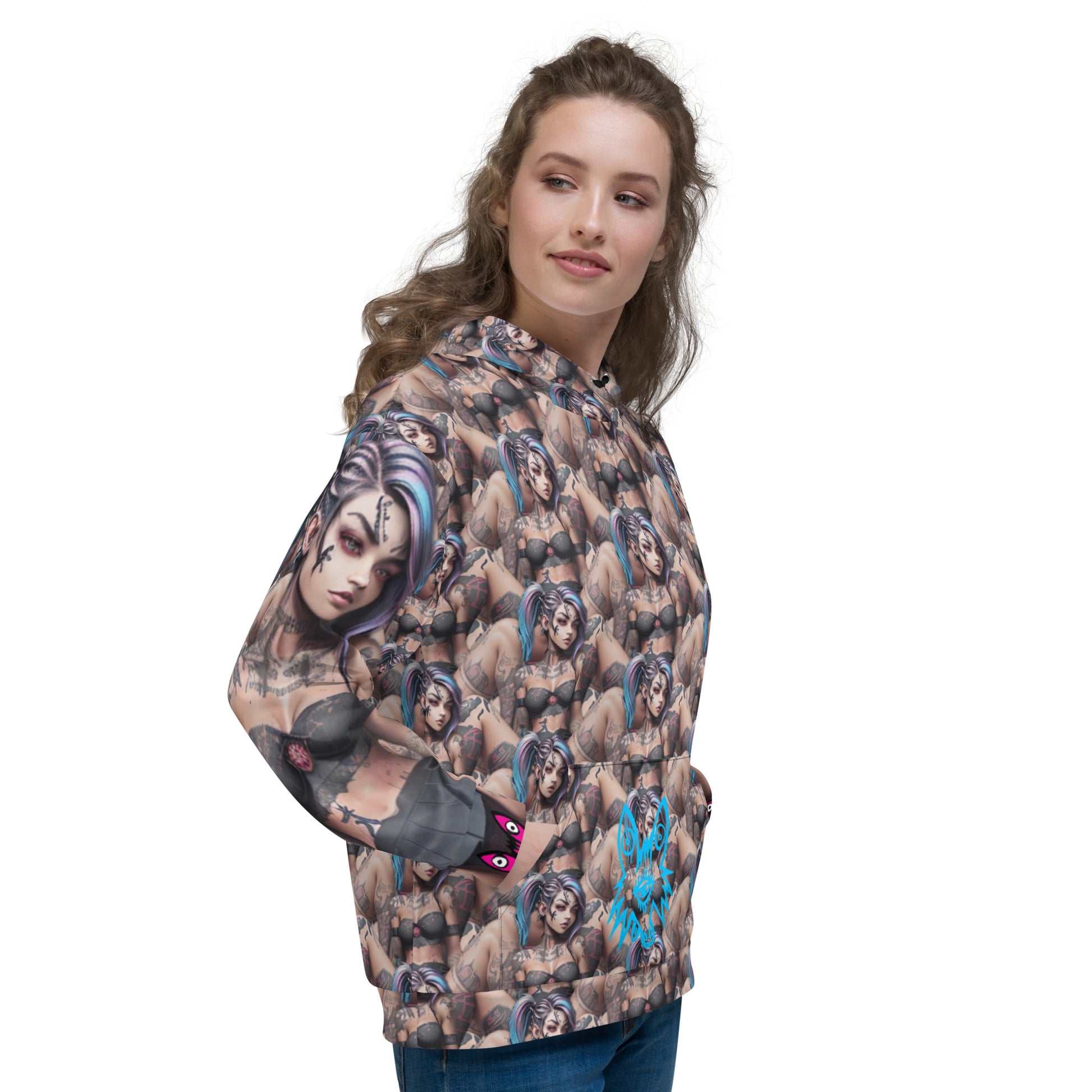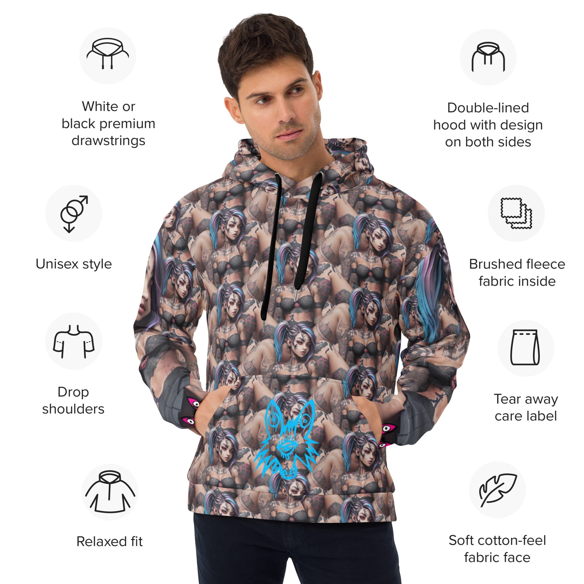 • Double-lined hood with design on both sides