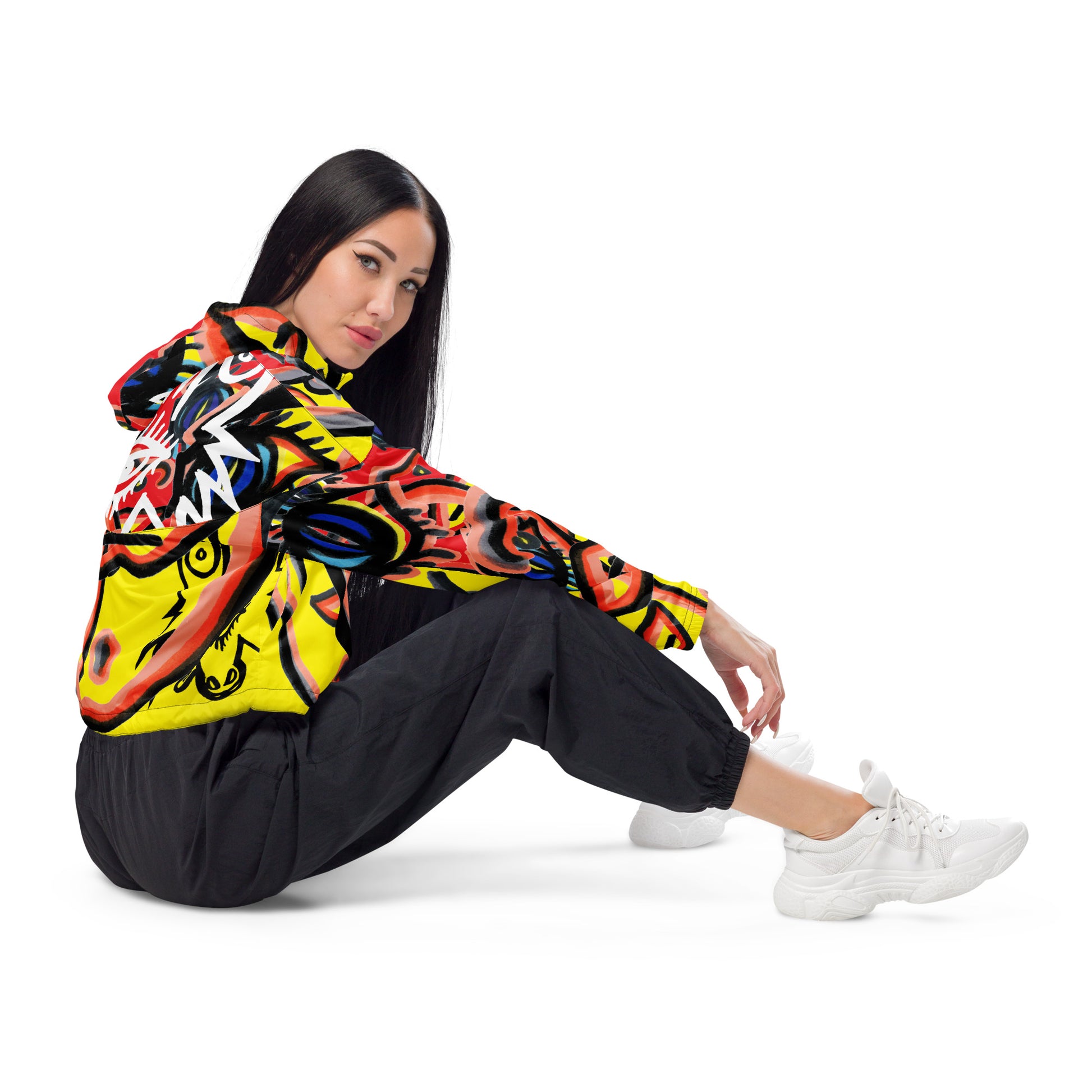 Hike in style without the rain getting in the way—this cropped windbreaker is lightweight, waterproof, and suitable for every kind of adventure. Features include side-slit pockets, breathable mesh lining, and adjustable drawcords on the hood and waist to support all your stylish outdoor looks.