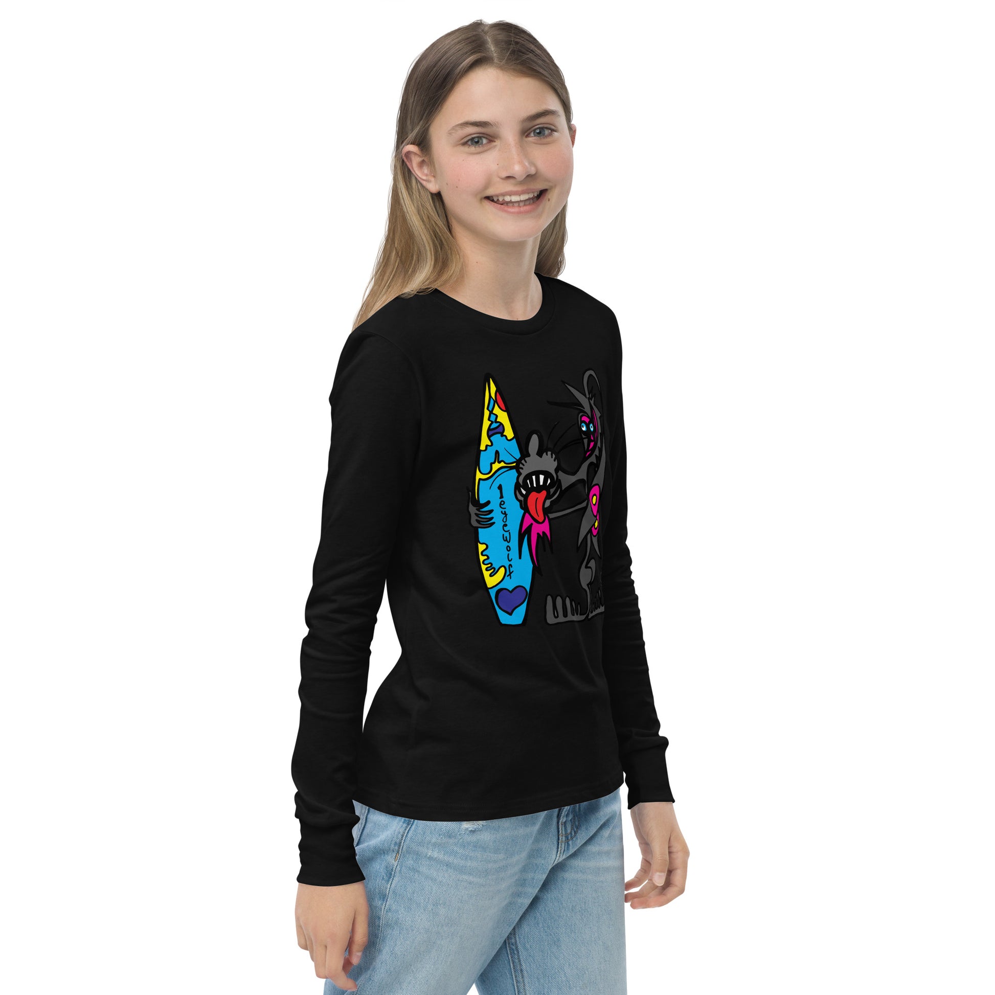 The Youth Long Sleeve Shirt is made of Airlume combed and ringspun cotton, which is known for its softness and durability. The shirt has a regular fit, classic crew neck, and ribbed cuff.